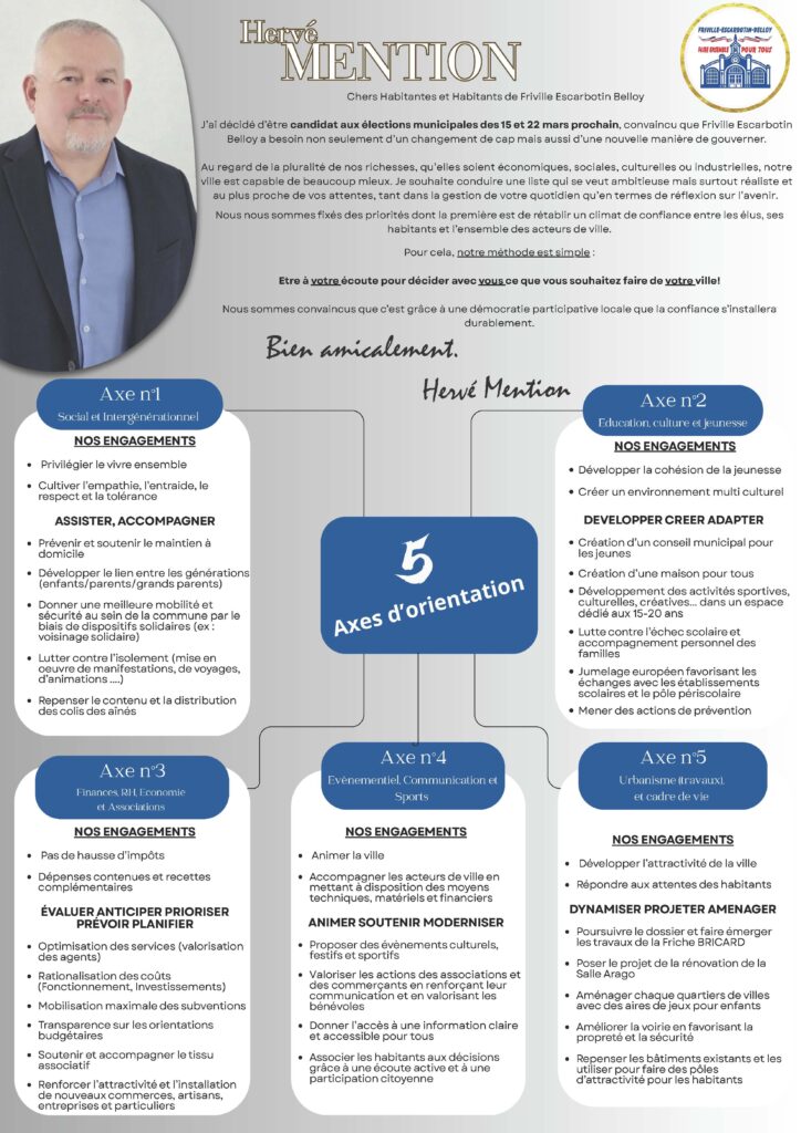 Nos 5 axes d’orientation 15 Fév,2026 admin5055Laisser un commentaire Ce week-end toute l’équipe de « Faire ensemble pour tous » a tracté les 2500 flyers sur toute la commune.